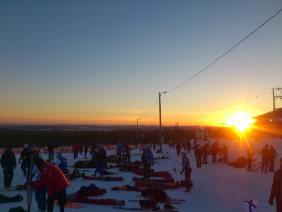 Solo una nota sulle piste di motoslitta (circa l'80%, ma utilizzate per il 95% della gara): non è stato tagliato nessun ramoscello dei fitti abeti alti 5 metri del bosco di Ylläs. Ciò significa che procedendo sulla traccia continuavi a prenderti delle sonore ramate dalle caviglie in su. Se poi eri alle spalle di un altro atleta, ti arrivavano delle frustrate pazzesche che di certo non rendevano meno faticosa la gara. Non solo le frustate, ma i rami impedivano di vedere oltre: sapevi che a breve sarebbe arrivato un bivio, ma non era detto che lo avresti visto, e anche se lo vedevi non era detto che ce l'avresti fatta a girare. Prova del grande rispetto che i finlandesi hanno per la natura.